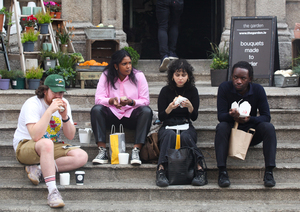 Lunch on the steps of Powerscourt Shopping Centre, Dublin 2.