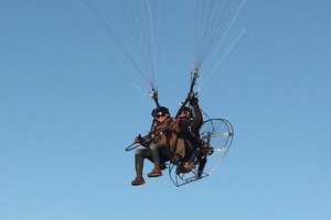 Paraglider Gill Scheider teams up with his father’s circus class for a trapeze/juggling/gliding mashup.