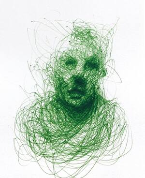 Frenetic pen and ink monochrome portraits by artist Adam Riches.