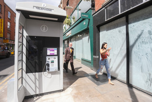 One of a number of new homeless-unfriendly Digital Kiosk phone booths being installed in Dublin city.