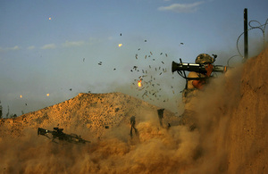 A US army soldier with the 101st Airborne Division Alpha Battery 1-320th fires an AT-4 as Combat Outpost Nolen on the outskirts of the village of Jellawar in the Arghandab Valley came under Taliban attack on September 11, 2010.