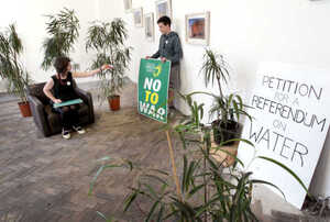 Sandra Dunne and her son Hal in the new Green Party pop up shop. TheĀ shop opened Monday and will remain open for 7 weeks, providing a space for the promotion for the Green Party, promoting environmental innovation and to raise funds for the party. ‘Pre-loved’ clothes, books*, DVDs, vinyl and CDs** will be on sale and various workshops and events are on the schedule….