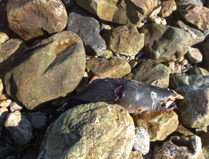 A young dead porpoise washed up on the east pier in Howth [North Dublin] today.