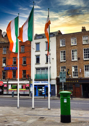 Post box in Dublin city centre with the insignia of Britain’s King Edward VII (1901-1910)