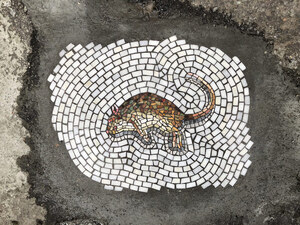 Inventive mosaic pothole interventions in New York City by Jim Bachor – part art, part public service.