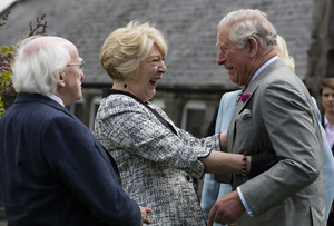 Sabina Higgins greets Britain’s Prince Charles in Glencree, County Wicklow yesterday