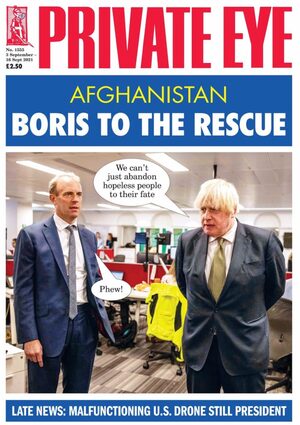 No Man Left Behind Bodger at 3:25 pm September 1, 2021 Private Eye. On shelves tomorrow. Thanks Bernard Afghanistan: Dominic Raab blames Ministry of Defence over ‘clearly wrong’ intelligence (The Times) FacebookTwitterPinterest