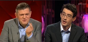 Ian Kehoe (right), of The Sunday Business Post, appeared on RTE 1’s The Saturday Night Show with Brendan O’Connor (left) to discuss three debt-drenched former property moguls: Bernard McNamara, Derek Quinlan and Sean Dunne – and what they’re up to now.