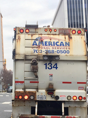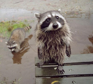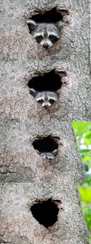 atA family of raccoons form, well, a raccoon chain to rescue a cub from the highway at Camdenton, Missouri last week, as captured by police officer Chris Williams.