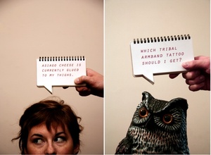 The Random Comment Book by graphic designer James Obriant allows you to put words in people’s mouths (well, above their heads actually) without the need for pesky thinking or talking. Sez he: