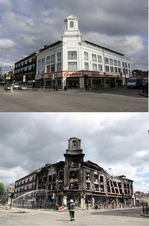 Either the best riot photo ever, or a cynical, staged troll. The jury is out.