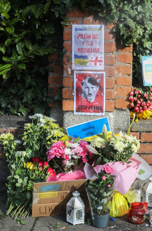 Dublin priest Fr. Fergal MacDonagh went down to the Russian Embassy in the last hour and threw a tin of red paint at the entrance as his way of protesting the Russian invasion of Ukraine. He says it’s his way of letting Ukrainians know that he supports them.