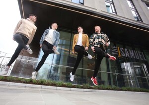 The launch of The Samuel hotel, featuring Irish TikTok sensations Cairde (top) and sweatshirted lovers of tragicomic literature (above).