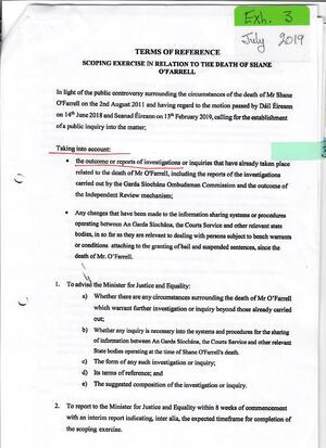 In November 2019, the family of Shane O’Farrell held a demonstration outside Leinster House after the Department of Justice rejected the terms of reference that were drawn up by Judge Haughton.