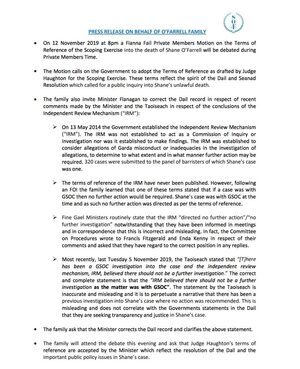 The O’Farrell family have been campaigning for years for not only the matters leading up to Shane’s death to be investigated but, also, for their concerns about matters which occurred after Shane’s death to also be examined.