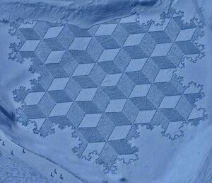 54 year-old British engineer Simon Beck spends up to ten hours a day tromping around in snow shoes to create these huge geometric forms, much to the delight of cable car passengers at Les Arcs ski resort in France.