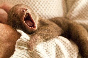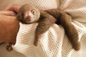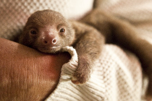Ruth – a baby Hoffman’s Two-Toed Sloth born six weeks ago at Rosamond Gifford Zoo in Syracuse, NY. Nursed back to health after being born underweight, she’s now reportedly ‘as active as a Two-Toed Sloth ought to be’.