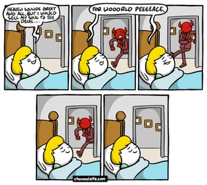 One day at breakfast, a man’s soul bursts out of his eyeball. While the soul roams the earth eating everything in sight, two wild deer bathe and dress the man’s catatonic body.