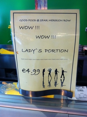 Thought you might be interested on some level in the blatant sexism one Boards.ie poster encountered in Spar in the IFSC {International Financial Services Centre, Dublin]”.