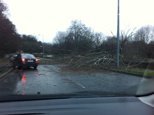 [A fallen tree on the Lower Dodder Road in Dublin on February 12]