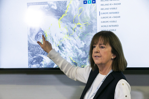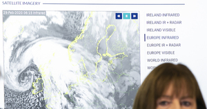 Met Eireann’s Evelyn Cusack and Minister for Housing, Planning and Local Government Eoghan Murphy speaking to the media about Storm Jorge which is hitting Ireland with 8 warnings, including red, in place bringing ‘severe and damaging’ gusts, thunder, flooding to Clare and Galway with an Orange warning for everywhere else.