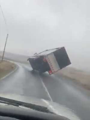 Everyone be careful out there. This was a truck being blown over by the wind near Maam Cross in Galway. #StormJorge