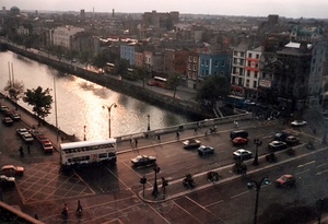 I was working on the top floor of O’Connell Bridge House (*aka Harp Tower/Harp) on a scorcher of an August evening, 1987 and took this with a pocket camera..Image available for license on Getty Images