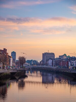 Sunrise over Dublin city.