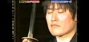 ‘Modern samurai’ Isao Machii shows off his extraordinary sword skills by completing a series of progressively more difficult tasks, including slicing an Airsoft pellet in half, mid flight.