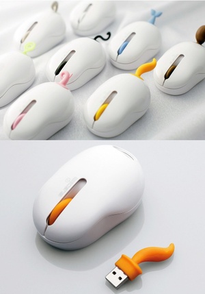 Just released in Japan, the ‘Oppopet’ (‘oppo pet’) wireless computer mouse, produced by elecom in collaboration with Tokyo-based designer Oki Sato – has a USB receiver shaped like an animal tail, making the device appear like a small pet.