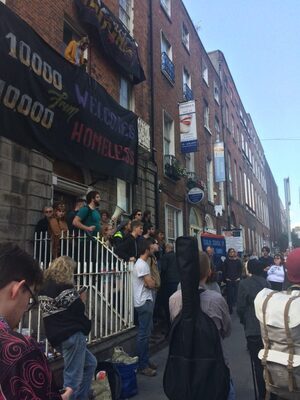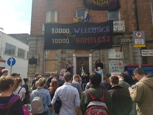 From top: A demonstration on North Frederick Street following the forced removal of housing activists from a vacant property on the street last week; Marian Finucane; Anthony Sheridan.
