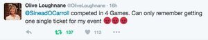 Tweet from Olive Loughnane, Irish race walker who competed at the games of 2000, 2004, 2008 and 2012.
