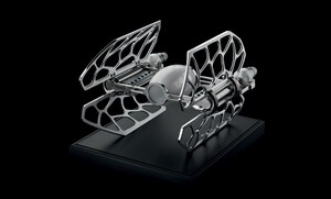 Maximillian Busser and Friends, the manufacturer of this elaborate Star Wars TIE fighter inspired music box sez:
