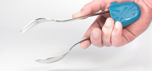 The Link, created by Konstantin Slawinski of Hannover, Germany-based studio dreimann, is a moulded piece of soft silicone with two X-shaped slots that lets you turn any two kitchen utensils (or whatever you’re having yourself) into a pair of tongs.
