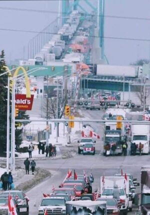 Scene at the East Link bridge in Dublin at present. No sound. No movement. Lots of trucks pic.twitter.com/HJRe2JWliV