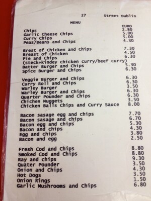 I went to lunch in the institution that is Fusco’s, Meath Street, Dublin today. The menu has remained unchanged for as long as I can remember. Managed to get a snap of it. It’s just a joy. I’d wager a few readers could name the “plaice” from the menu. It’ll give the spelling Nazis something to give out about anyway.