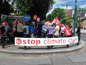 U.S embassy Dublin rally – a student message to @campaignforleo @simoncoveney & Irish government on #ParisClimateDeal #ParisAgreeement pic.twitter.com/A69CKLbBxy