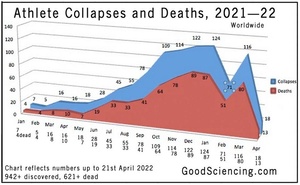 Athlete collapses and deaths chart from January 1 2021 April 21, 2022.
