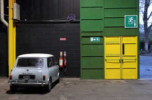A vintage Mini Cooper parked defiantly during the of set up for the RIAC (Royal Irish Automobile Club) National Classic Car Show [this weekend] at the RDS Simmonscourt, Ballsbridge, Dublin.