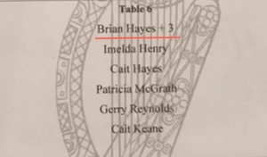 Mr Hayes says that his guests, listed on the event’s seating plan, were school friends and not directors of a vulture fund, a rumour which has spread on social media.