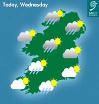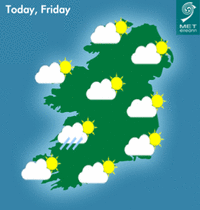 Some light showers this morning in parts of Connacht and Munster. Otherwise a largely dry day with a fair amount of cloud and some bright or sunny spells. Highest temperatures of 16 to 19 degrees with moderate north to northwest breezes.