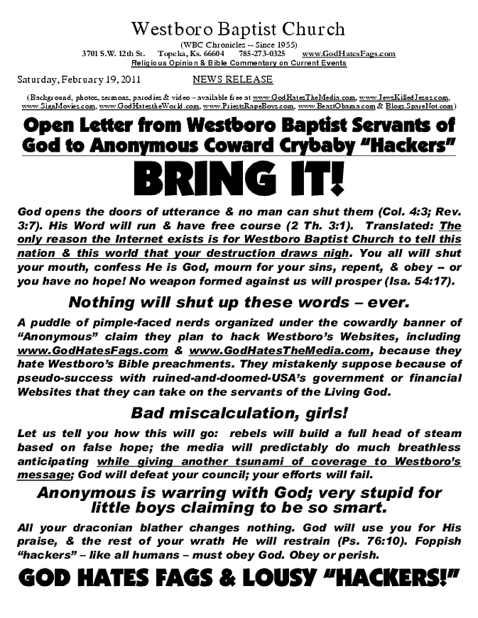 This is deeply upsetting, The Westboro Baptist Church just sent me this…