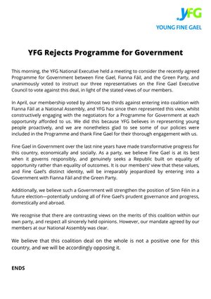 A #FineGael branch committee actually ‘terminated’ following its call for resignation of the party leader?